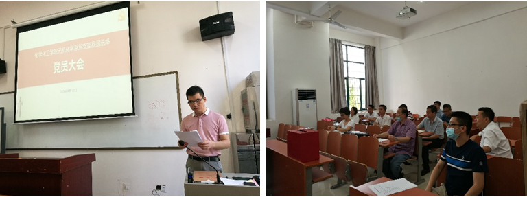 2020年6月17日,无机化学系党支部在新校区化学楼123教室召开换届选举大会,支部全体党员参会。会议由上一届党支部书记张寿春主持。公司党委书记罗永忠同志,公司党委委员、专职组织员李璞同志列席会议。