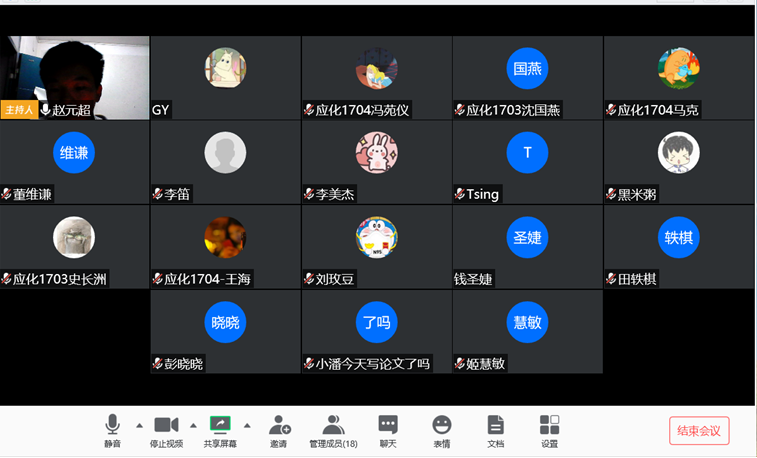 2020年4月17日晚九点,本科生应化第二党支部通过腾讯会议、微信群举行线上党日活动,进一步学习习近平总书记近期重要讲话精神,并就国家安全进行学习。会议由支部书记赵元超同志主持,支部全体党员参加。