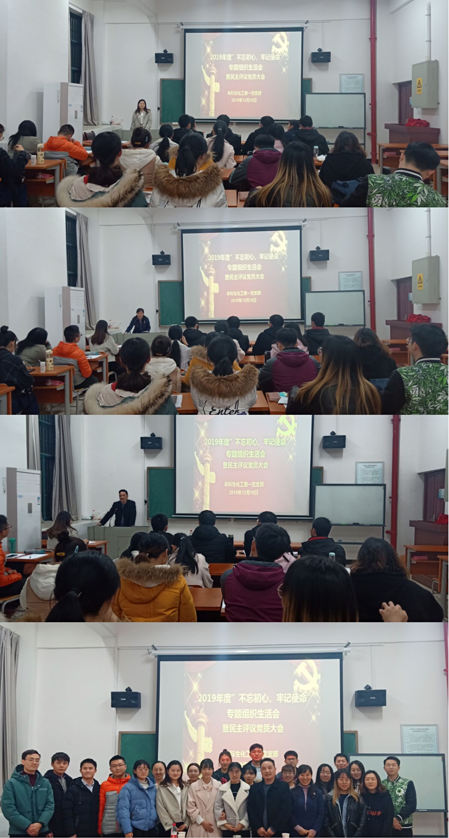 2019年12月10日晚7点,球王会本科生化工第一党支部在新校区化学楼129教室召开“不忘初心、牢记使命”专题组织生活会暨民主评议党员大会。会议由支部书记范帆主持。公司党委党校常务副董事长、组织部副部长赵永正老师和联系支部的公司党委委员朱敏老师到会指导。支部党员22人及8名群众参与支部的民主评议党员活动。