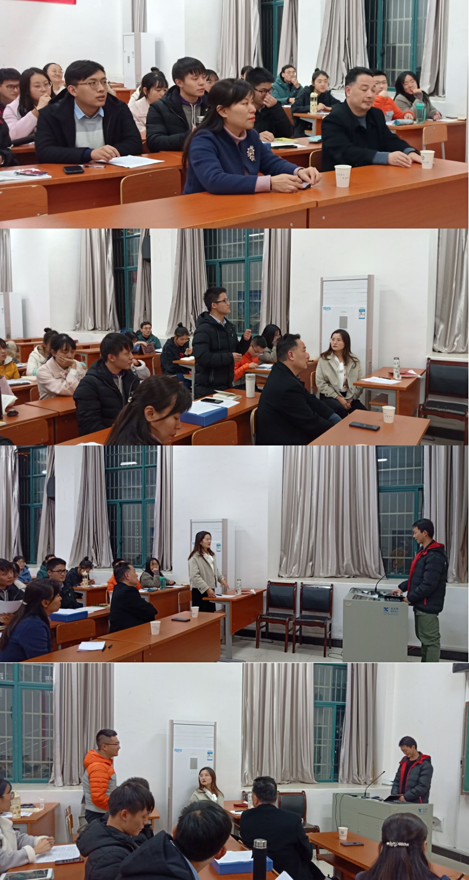 随后,朱敏老师对本次大会作点评。对发言形式,支部党员之间的联系,党员发展流程以及各位党员自我批评内容提出了建设性的意见,最后还为党员同志们解析了形式主义问题。赵永正老师对本次大会作出总结并提出三点希望。表扬了同志们准备充分,批评到位,达到了“红红脸、出出汗”的效果,专题组织生活会开展得很成功。他提出三点希望:第一要继续加强理论学习,用理论武装头脑,利用好学习强国软件。第二要把“不忘初心、牢记使命”作为终身课题,贯彻始终。第三要发挥党员的先锋模范作用,在学习工作上有担当意识,发挥榜样的力量。各位党员都受益匪浅。