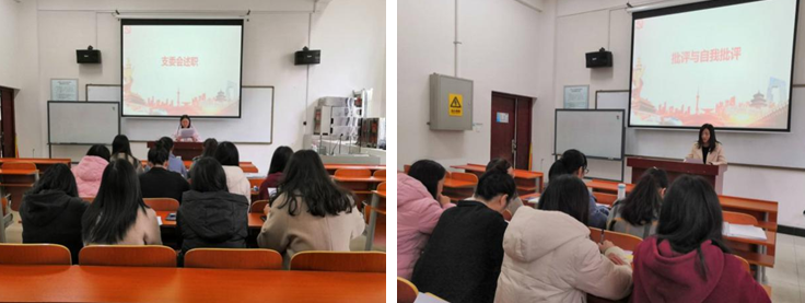 接着,大会开展了批评和自我批评。党员同志们在黄润敏等其他支委同志的带领下依次进行了发言,主要对本学期以来在思想、学习和生活上的收获与不足进行了总结、批评和反省,并针对相应的问题实事求是地提出了具体整改措施,同时也表达了要改正和完善的决心。在自我深刻剖析的基础上,也客观地指出了身边同志身上存在的不足,并给出了合理的建议。