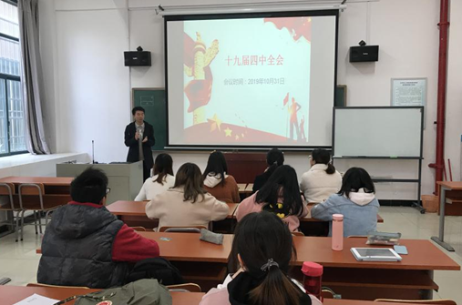 11月22日,为了学习贯彻党的十九届四中全会精神,深入推进“不忘初心、牢记使命”主题教育工作,本科应化第二党支部组织全体党员在化工楼129开展专题学习活动。本次活动由支部书记赵元超主持。