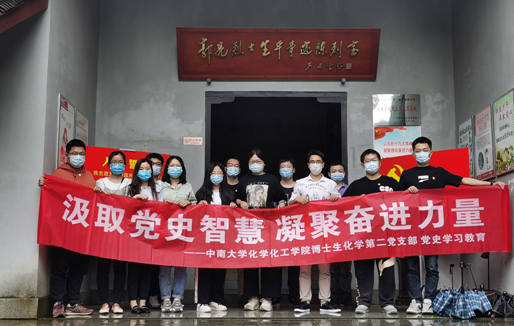2021年5月26日下午,博士生化学第二党支部赴长沙市望城郭亮纪念园围绕“学史崇德”主题开展党史学习教育第三专题学习。支部副书记梅雨同志带领支部各党员参观了郭亮烈士故居和郭亮烈士生平事迹陈列室。