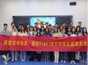 为了庆祝中国共产党成立100周年,深入学习贯彻习近平总书记重要讲话精神,积极引导当代青年从党的百年伟大奋斗历程中汲取不断前进的智慧和力量,应化T1801团支部于2021年5月21日在A座129教室开展百年党史宣讲大会。