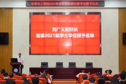 6月21日上午8时,球王会2021届本科生毕业典礼暨学位授予仪式在化学楼133报告厅隆重举行。公司党委书记罗永忠、经理刘又年、副书记刘有才、副经理刘广义各系教师代表以及全体本科毕业生参加典礼,典礼由刘有才老师主持。