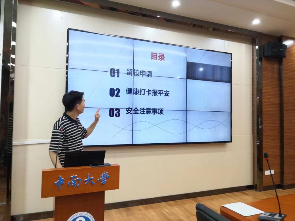 会议首先对暑期留校申请表的填写作出明确说明,同时要求所有留校员工每天按时完成健康打卡和平安报备,辅导员赵元超老师紧接着强调了安全稳定十点重要注意事项。会议要求全体留校员工切实注意日常生活安全,包括用水用电安全、财产安全、网络使用安全和人际交往安全等,自觉强化法制观念,在保证自身安全的前提下维护好老员工良好形象,不参与和组织非法宗教、非法团体活动。对于暑假期间留校的员工,公司将严格执行健康打卡报平安制度和离校报备制度,保持老师、同学、家长间通讯畅通。