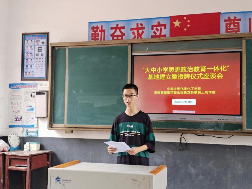 实践团负责人徐振翔代表公司对共青团益阳市赫山区委员会、衡龙桥镇委员会以及黄土坑公司的大力支持及精心安排表示感谢,并表示球王会官网化学球王会深入学习宣传贯彻党的二十大精神,此次“大思政”实践育人联盟成立对双方都具有重大意义,实践团将不负期望,牢记使命,以高标准、高质量完成此次实践活动。