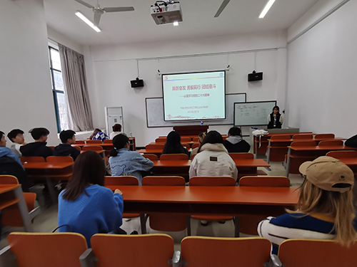 接下来,文体委员王佳敏介绍了“开辟马克思主义中国化时代化新境界”和“以中国式现代化全面推进中华民族伟大复兴”等观点,并为同学们播放了中国共产党国际形象网宣片。
