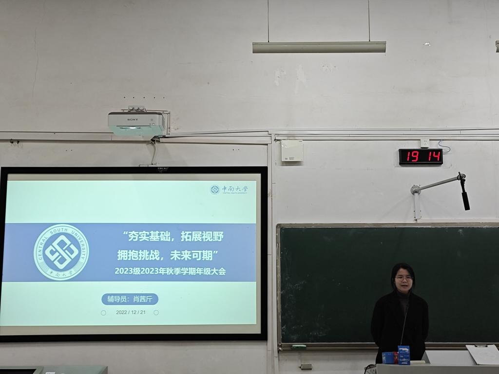 为解答新生适应阶段中遇到的问题,严肃学纪考风,营造良好学习氛围,2023年12月21日晚,球王会2023级本科生全体于球王会官网新校区D座125召开了主题为“夯实基础,拓展视野,拥抱挑战,未来可期”的年级大会,大会由2023级辅导员肖茜斤老师主持召开,2023级全体本科生参会。