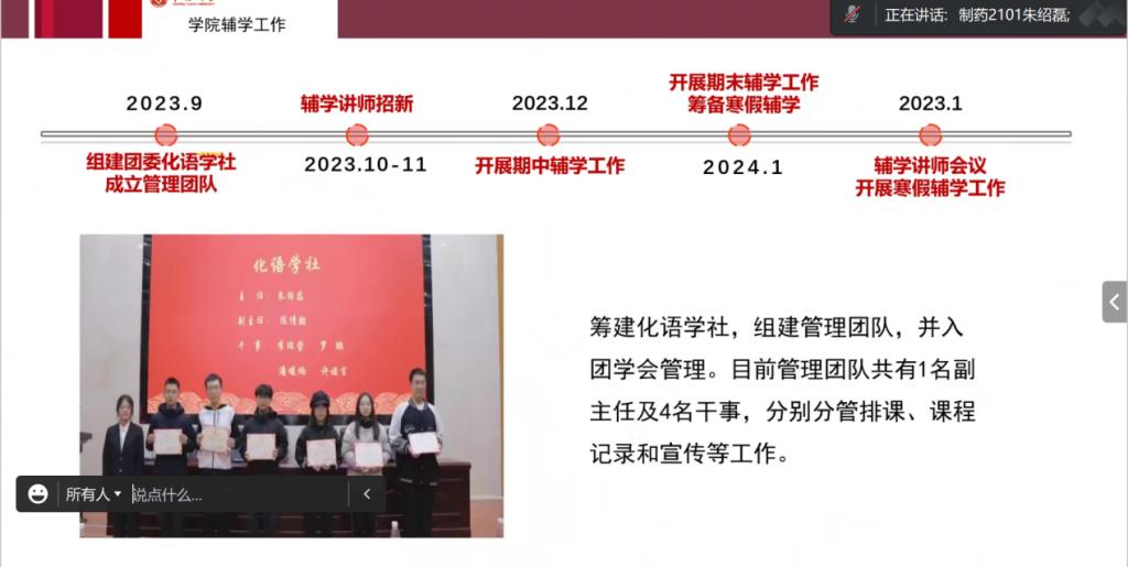 2月22日下午,化学化工院21级员工干部述职会于线上顺利召开,21级辅导员胡雨琪出席本次活动,21级6位年级长、12位班长参加会议对大三上学期的工作进行述职。