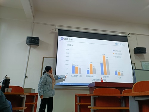 班会伊始,陈铭就上学期本班同学期末成绩、挂科情况、体育打卡等多个方面对班级上一学期的学习情况进行了分析。班级同学在及格率和体测通过率等方面表现良好,新学期将继续保持。接着,陈铭在诚信应考方面进行了讲解,并播放了《诚信应考教育宣传片》。